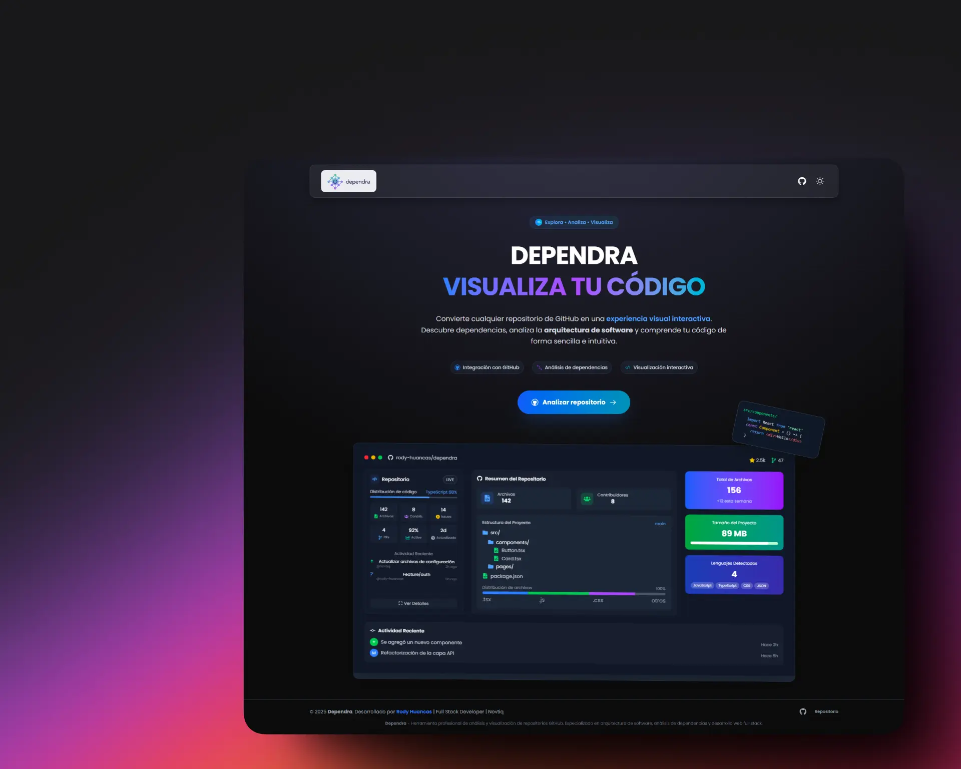 Explora visualmente la arquitectura de repositorios de GitHub para comprender mejor la estructura y organización del código.